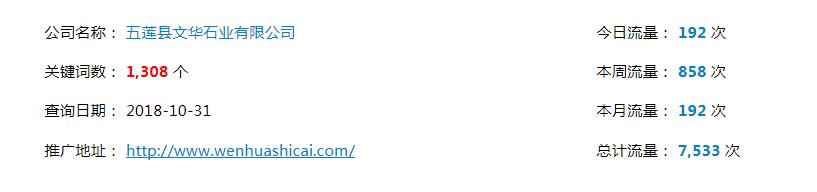 簽約五蓮縣文華石業(yè)有限公司網(wǎng)絡(luò)推廣項(xiàng)目。目前網(wǎng)絡(luò)推廣,百度首頁關(guān)鍵詞已達(dá)1360多個(gè)。項(xiàng)目穩(wěn)定進(jìn)行中。